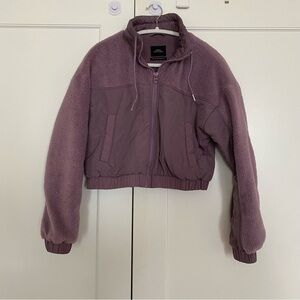 Urban Outfitters Purple Jessica Mixed Media Cropped Jacket in size small. Excellent condition Oversized and cropped with a throwback feel. Jacket is extremely well-made and warm! Fleece lining in the body and sleeves are lined with a slicker nylon material