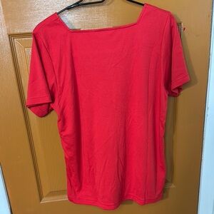 This vibrant red blouse from Urban Outfitters features a boxy silhouette with short sleeves and green star-like embellishments near the neckline. Perfect for adding a touch of flair to your casual or holiday wardrobe.SUBURBAN PETITE