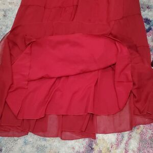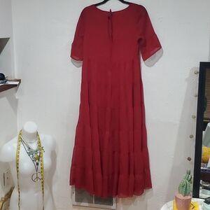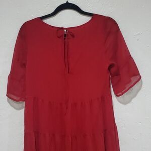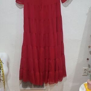 Beautiful red midi/maxi dress. Sheer sleeves. Flowy, tiered skirt. Perfect for any occasion. NWT. No flaws. Smoke free home.