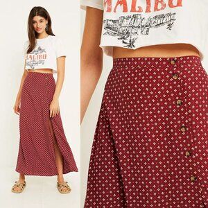 Urban Outfitters Red Printed Side-Button Maxi Skirt Size Large 26999
