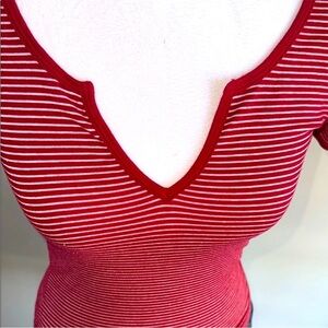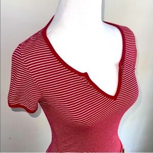 Urban Outfitters Red Striped Fitted Cut Out Tee size Xs