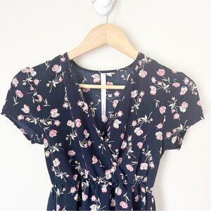 Cute chic Urban Outfitters Reformed Floral Wrap Mini Dress Navy XS - spring summer wrap mini dress boho casual wedding shower bbq picnic vacation resort date bachelorette party homecoming birthday church baptism christening career work office easter