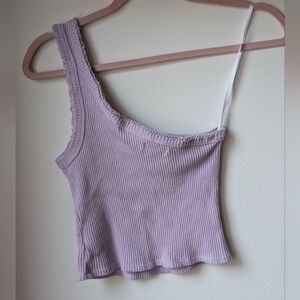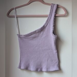 Urban Outfitters Ribbed One Shoulder Purple Cropped Stretch Tank Top Size M |
