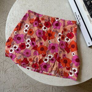 Urban Outfitters Rosie Notched Floral Pelmet Mini Skirt Linen Blend Size S