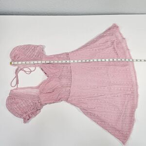 Urban Outfitters Roxie Lace Mini Dress Pink Sheer Puff Sleeve Fit Flare Size S