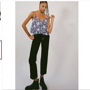 Urban Outfitters Ruby Satin Blue Flowy Ruffle Tank sz L