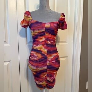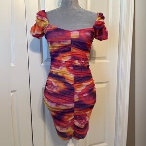 Urban Outfitters Runched Body Con Colorful Tie Dye Going Out mini dress Sz SM