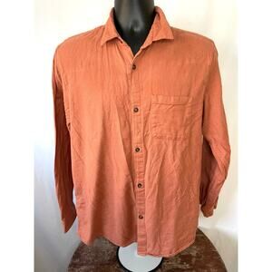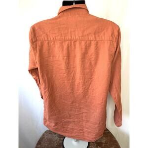 Urban Outfitters long sleeve button-up shirt in a soft rust orange color. Made from lightweight textured cotton fabric with a relaxed fit and single chest pocket. Easy to dress up or wear casual.