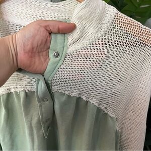 ✨ Urban Outfitters Sage Green & Cream Mesh Pullover Sz L | Lightweight Top