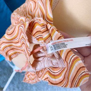 Out From Under Sand Dollar Romper in the color Assorted, a groovy wavy / wave pattern in a mix of shades of peachy coral pink, mustard yellow, white, and deep burnt red. The look has a 70s hippie / surf / skate beach vibe that I love!