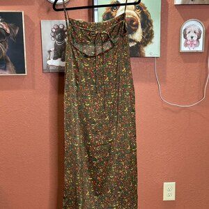 Urban Outfitters Sasha Satin Midi Slip Dress. Green floral midi/maxi dress with a slit.