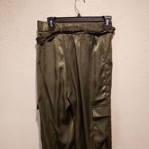 Urban Outfitters Satin Pants Dark Green Olive Pockets Size S-P High Rise E