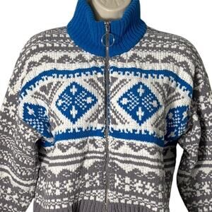 Urban Outfitters Scout Shrunken Snowflake Blue and Gray Zip Front Sweater Size M