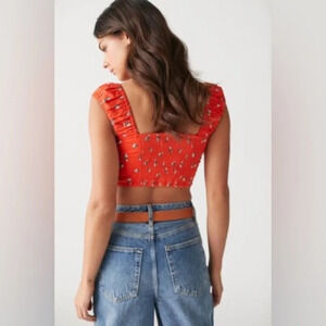 Urban Outfitters Selena Ruched Corset Floral Crop Top in Red Size XS