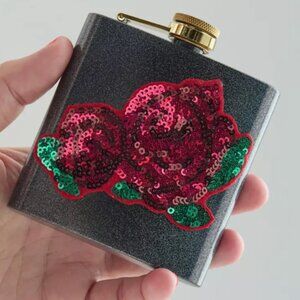 Urban Outfitters Sequin Rose Embellished Flask New