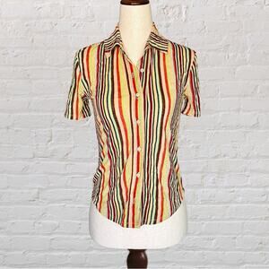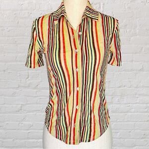 Urban Outfitters Striped Chiffon Button-Up XS Sheer Fall Retro 90s