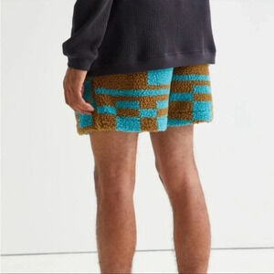 Urban Outfitters Sherpa Checkerboard Volley Shorts - turquoise/ khaki size M
