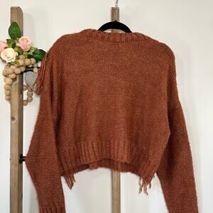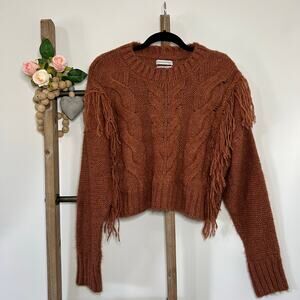 Urban Outfitters Shimmer Fringe Cable Knit Long Sleeve Brown Sweater Size Small