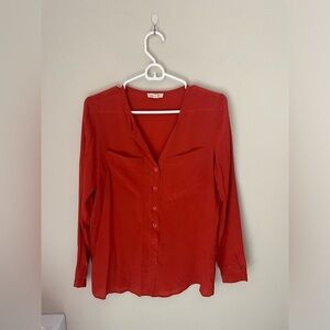 Urban Outfitters Silence + Noise 100% Silk Red Button Down Blouse Size Small