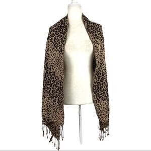 Urban Outfitters Animal Print Scarf Urban Outfitters animal print scarf in an oversized, oblong shape for endless layering options, by Silence and Noise. Complete with twisted rope fringe lining the sides. Cotton Hand wash Imported