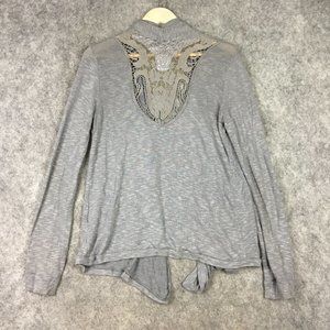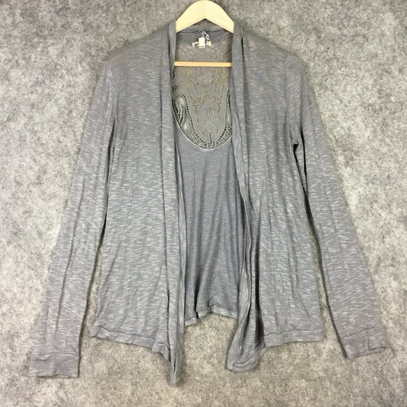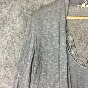 Urban Outfitters Silence Noise Cardigan L Slub Gray Lace Inset Open Front Career