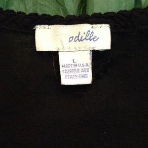 Minimalist dressing at its best. Unlined black 100% cotton tunic by Odille for Urban Outfitters. Neckline and hem are embellished with double hem and topstitching. Length is 28" with a flirty flaired silhouette. Like new condition, worn once. Sz L