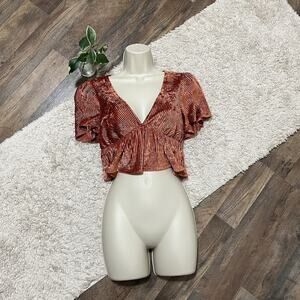 Urban Outfitters Size Small Orange Velvet Ribbed V Neck Cropped Peplum Top