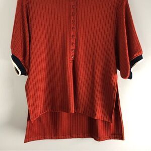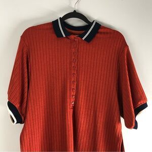 Urban Outfitters Size XS Rust Red Blue Stripe Collar Oversized Farrah Polo Top