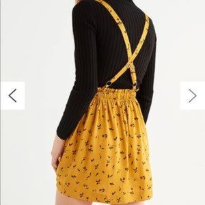 Yellow floral skirt with adjustable straps. Has an elastic waist strap in the back with a cute, tie front.