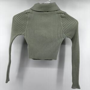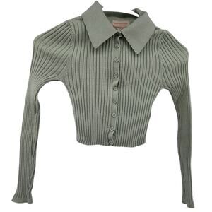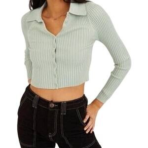 Urban Outfitters Skylar Ribbed Button-front Cropped Sweater Top Collar Green XS