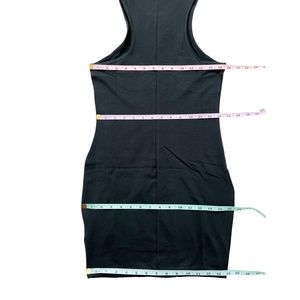 Urban Outfitters Out From Under Christie Slashed Mini Dress. Black. Slashed cutout details on front. Cut short in a bodycon fit. Racerback. Sleeveless. Unlined. No pockets. Pull over styling. 96% cotton, 4% spandex knit fabric. Machine wash cold. Tumble dry low.