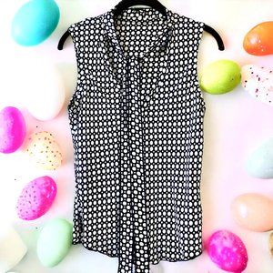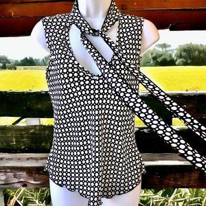 Urban Outfitters sleeveless top blouse in black & white polka dots. Attached neck tie.