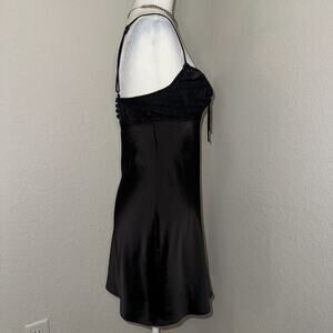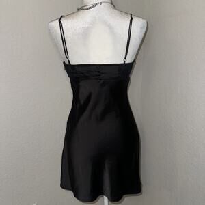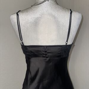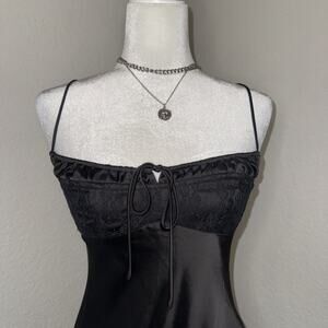 Urban Outfitters Slip Dress Women Medium Black Satin Lace-Trim Adjustable Straps.