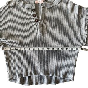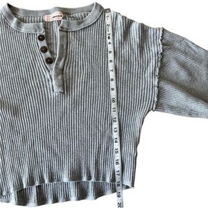 Urban Outfitters Small Henley Grey Sweater Crop Wide Sleeve Ribbed Pullover