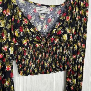 Urban Outfitters Smocked Floral Long Sleeve Blouse Black Womens Size Large