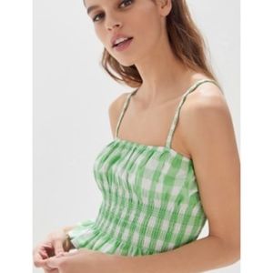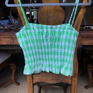 Green and white gingham smocked ruffle crop top from Urban Outfitters. Super cute fit. Worn once.