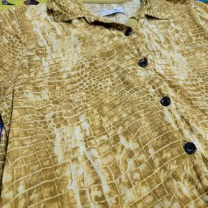Urban Outfitters Snake print button-up short sleeve shirt, mustard yellow size:M