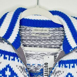 Urban Outfitters Soft Knit Holiday Winter Sweater Jacket Cobalt Blue Gray