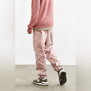 Lightweight nylon is cut in an athletic fit with a partial mesh lining and elastic trim at the hem.