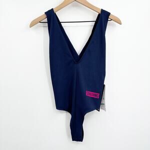 Urban Outfitters Spalding Plunging Cross Back Bodysuit in Navy Size Medium NWT