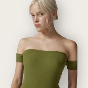 Urban Outfitters Spencer Off The Shoulder Knit Midi Dress Medium Green Feminine