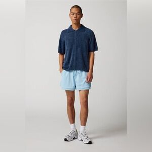 Urban Outfitters Standard Cloth Fuzzy Polo Short Sleeve Sweater zip cardigan UO navy blue solid