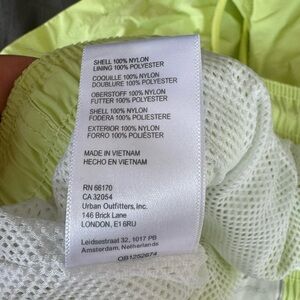 Bright lime swim shorts with an elastic waistband and drawstring.
