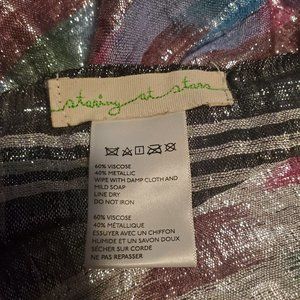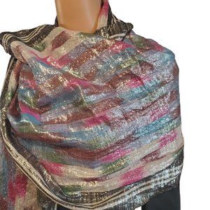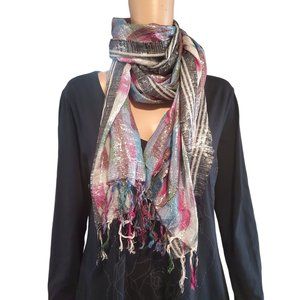 Light and airy woven scarf multicolored with a subtle metallic shimmer. Trimmed with tonal fringe. UO Exclusive.