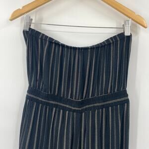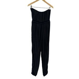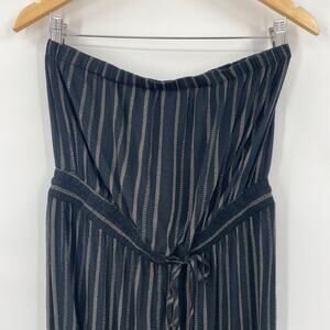 Urban Outfitters Strapless Jumpsuit Tie Waist Beige Stripes Black Womens Medium