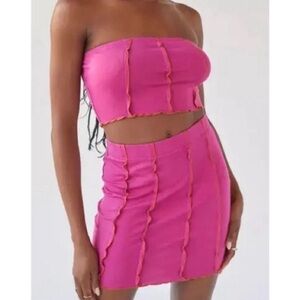 Urban Outfitters Stretch Skirt Strapless Tube Top Set Small Berry Orange
