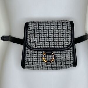 Urban Outfitters Structured Mini Belt Bag Plaid Check Black Grey Travel Casual