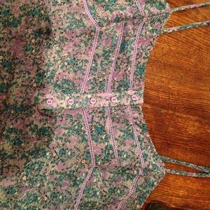 Purple and blue floral Urban Outfitters tank top; Embroidering on the bodice; Adjustable straps; Adorable with white shorts and pants! Used but in GREAT CONDITION! No stains or tears.