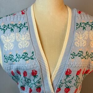 Urban Outfitters Sweater Vest Cropped Strawberry Butterfly Print Womens XS