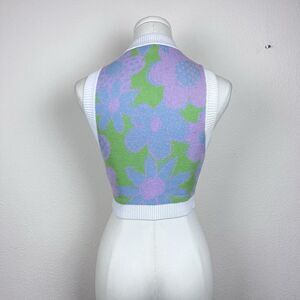 Urban Outfitters Sweater Vest Womens Extra Small Cropped Floral Daisy Boho Knit